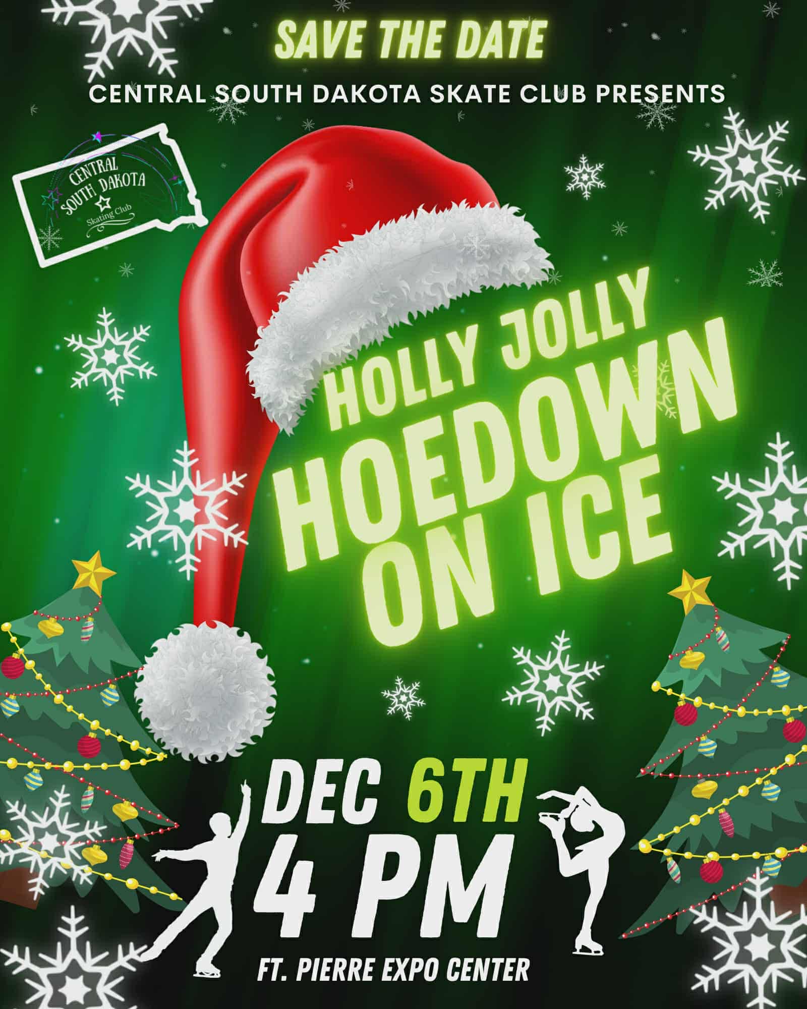 Holly Jolly Hoedown On Ice Date Dec 06 2025 Time 4:00 pm - 6:00 pm Location Expo Center, 320 Casey Tibbs Street, Fort Pierre, SD, 57532, United States 320 Casey Tibbs Street, Fort Pierre, SD Share this event